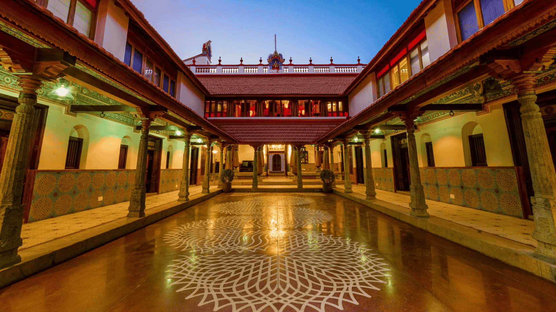 Chettinad’s timeless legacy of elegance is attributed to The Chettiars, the legendary merchant community, who once controlled vast trade networks across Asia. You will see this reflected in the grand mansions they built, adorned with Italian marble, Burmese teak pillars, Belgian crystal chandeliers, and hand-painted tiles from Japan. With their enormous wealth, they transformed their humble villages into showcases of refined taste.